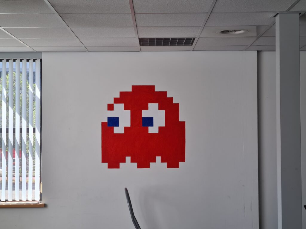 • Uit de hand een muurschildering gemaakt voor Robotteam Pi in Eindhoven.